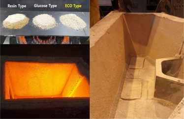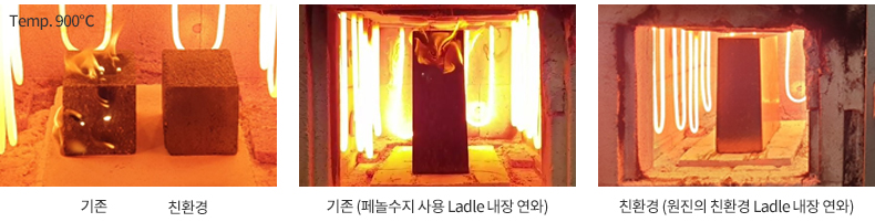 대부분의 경우 철강용 Ladle 내장재로 사용되는 불소성 정형 제품은 Phenolic 수지를 Binder로 사용하고 있습니다. 페놀 수지는 지난 산업계에서 보편적으로 사용되는 물질이나, 높은 온도에서 분해되어 발생되는 가스 성분이 특유의 취기를 발생 시키기 때문에 작업 환경상 문제가 되는 경우가 많아, 유해 성분을 최소화하는 결합 시스템의 요구가 증가되고 있습니다. 또한 페놀 수지에 포함된 미량의 성분들로 인해 인체에 유해한 가스가 발생되기도 하므로, 원진에서는 친 환경 제품의 개발과 공급을 통하여 보다 안전하고 무해한 산업 현장이 될 수 있도록 기여하고 있습니다.